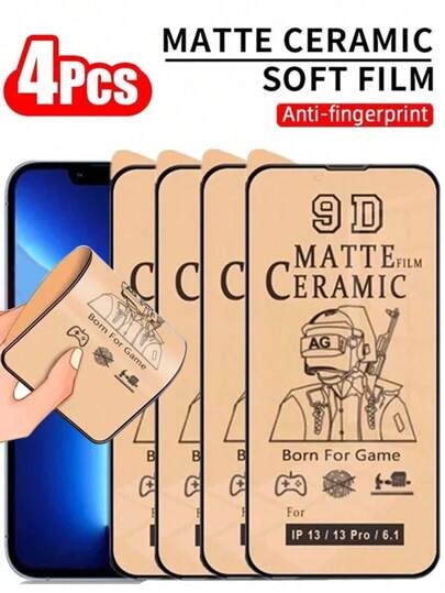 4 piezas de película cerámica mate compatible con iPhone 16/16 Plus/16 Pro/16 Pro Max/15/15Pro/15 Plus/15 Pro Max/14/13/12/11 - Regalo para cumpleaños, familia, amigos - Protector de pantalla de teléfono, accesorios para teléfono - transparente - Añade 3