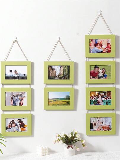 Un marco de fotos verde de 2/3/4 juntas con cuerda colgante de 6 pulgadas para decoración de pared o recuerdo - Verde - Añade 9