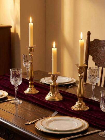 1 pieza/3 piezas Candelabro de metal y hierro simple y creativo, lujoso y romántico para cena a la luz de las velas en bodas, fiestas, dormitorios, mesas, restaurantes, salas de estar, graduaciones, cumpleaños, cocinas, San Valentín y Año Nuevo. Candelabro decorativo, de moda, atmosférico, velas románticas para bodas y mesas, se pueden usar para fiestas de cumpleaños - Dorado - Añade 3