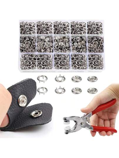 400/800 piezas de sujetadores a presión de metal, 100/200 Sets de herramientas de alicates para cinco garras de sujetadores con una caja, clips de sujetadores y herramienta de pinzas para ropa,, costura hecha a mano - Plateado - Añade 10