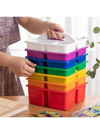 1 cesta de plástico con asas y separadores de colores arcoíris, perfecta para la clasificación codificada por color, aulas de preescolar, organización de herramientas, pinceles de dibujo, papelería, etc. - Multicolor - Añade 4