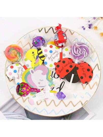 Paquete de 10 tarjetas de papel para paletas de caramelos de la serie de insectos con mariquita, mariposa y abeja, para sostener paletas, como regalo para fiestas, regalos del día y decoración de fiestas de cumpleaños. - tarjeta de caramelo - Añade 6