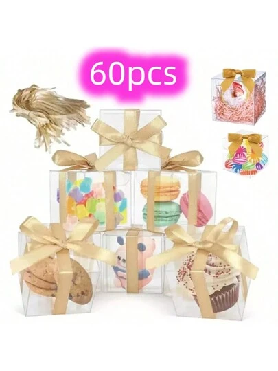 60pz cajitas De Cartón mampara para mesa de dulces Boda, Dulceros, Caja Fiesta, Cruz olsas de regalo para fiesta de bodas, envoltorio y empaquetado - Blanco - Añade 6