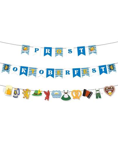 1 pieza Bandera de decoración para fiesta de festival de cerveza con tema del festival de cerveza de Múnich, diseño de jarra de cerveza, salchicha y pretzel - Multicolor - Añade 6