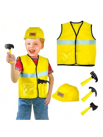 Disfraz de trabajador de la construcción para niños y niño pequeño con sombrero de seguridad, conjunto de vestuario de constructor fingido para que los niños se disfracen y jueguen, edades 3, 4, 5, 6, 7 - amarillo - Añade 4