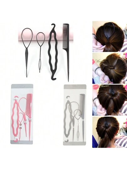 Conjunto de 4 Piezas Palitos para el Cabello y Clip para Hacer Trenzas y Moños, Herramienta para el Pelo y Accesorios para mujeres, damas y niñas - Multicolor - Añade 1