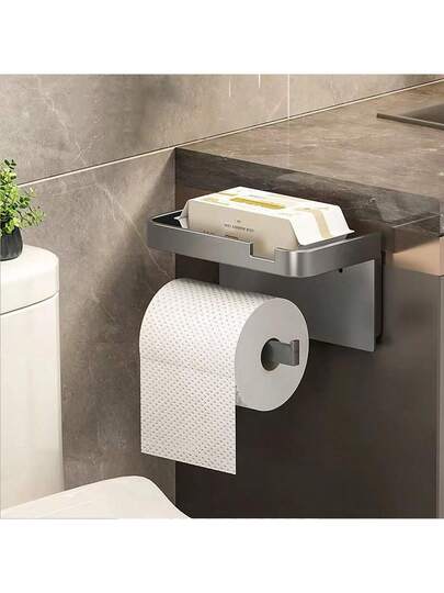 1 pieza Soporte simple de caja de pañuelos de plástico, sujetador de doble capa para rollo de papel higiénico, organizador de baño - Negro - Añade 1