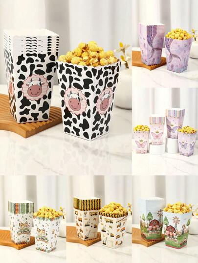 4 piezas Cajas de palomitas de maíz con diseño de dibujos animados, Suministros de fiesta de cumpleaños temáticos de granja de vaca, animal de sirena y mariposa, Cajas de palomitas de maíz para cine, Contenedores de papel desechables para dulces y alimentos, Bolsas de regalo de cocina para contenedores de dulces y galletas para fiestas - Multicolores-4uds - Añade 6