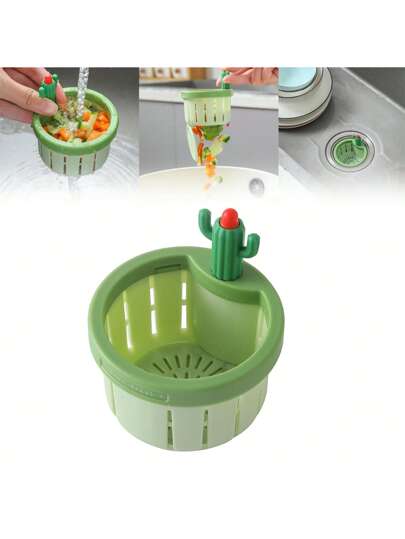 Colador de desagüe del fregadero de la cocina con diseño de cactus, canasta autofiltrante de prensado automático de 2024, cesta elevadora multifuncional con filtro de red para el hogar, colector de residuos de cocina - Multicolor - Añade 1