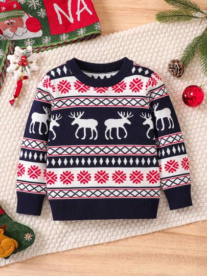 Jersey de punto navideño para niños - Azul Marino - Añade 1