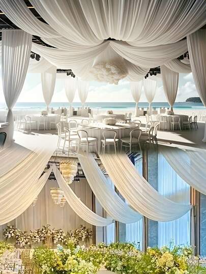 1 Pieza de velo de organza blanco para decoración de fondo de escena de boda, tela decorativa para techo, adecuado para fondo de boda, banquete de hotel, decoración de fiestas, cortinas, decoración de techos, etc. Mejor regalo, decoración de boda, decoración del hogar, decoración de habitación, favores de fiesta, decoración de cumpleaños de novia, decoración de graduación, decoración de fiestas - multicolor - Añade 6