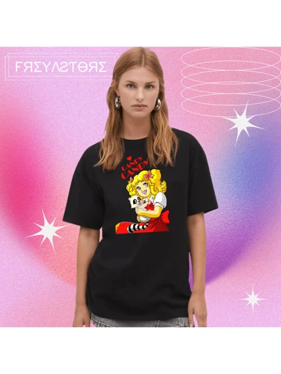 FREYA STORE Playera Candy Candy Rosa Para Dama Ajustada Anime Japón - Negro - Añade 1