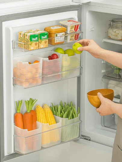 3 piezas Cajones de almacenamiento lateral para refrigerador, caja de almacenamiento de alimentos frescos para organizar desechos de comida en el congelador, organizador de bolsas - Multicolor - Añade 4