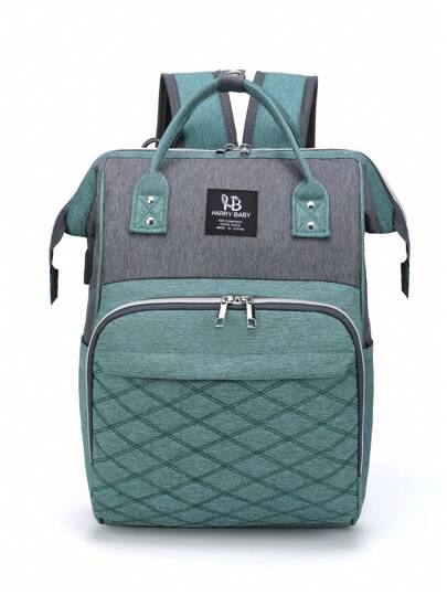 Mochila portátil de gran capacidad con bordado gris, que se puede colgar en un cochecito, adecuada para los viajes diarios de la madre. - Verde - Añade 1