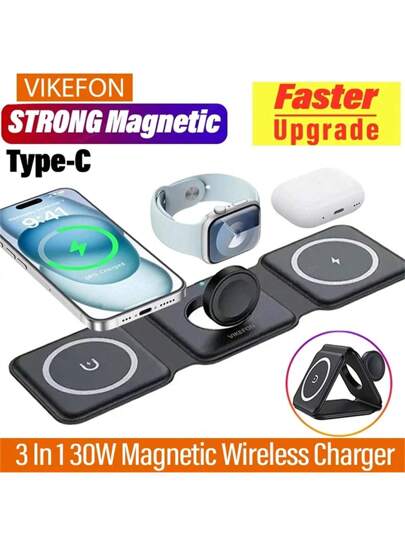 Cargador inalámbrico magnético 3 en 1 VIKEFON, compatible con iPhone 15, 14, 13, 12, AirPods Apple y carga rápida, estación de acoplamiento compatible con iPhone 16, 15, 14, 13, 12, 11/Pro/Max/Mini/Plus, X, XR, XS/Max, SE, 8/Plus, compatible con Apple Watch 1-8, AirPods 3/2/Pro, iPhone, iPad, teléfonos Android, regalo para familia, amigos, niños, cumpleaños, Navidad, invierno, novia, novio - Multicolor - Añade 1
