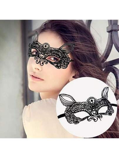 Máscara de encaje para mascarada, máscara negra de encaje con puntas de ojos de murciélago para mujeres, máscara de media cara sexy para fiesta de graduación, baile de máscaras, disfraz de Venecia, Halloween, carnaval, fiesta de disfraces, decoración y regalo - Negro - Añade 1