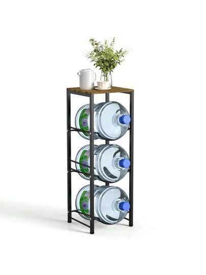 Soporte con estante superior para garrafón de agua de 5 galones, soporte para botellas de agua de 3 niveles, estante de almacenamiento de agua de gran resistencia para garrafón de enfriador de agua, organizador de soporte para garrafón de agua para el hogar, la cocina y la oficina - Marrón - Añade 1