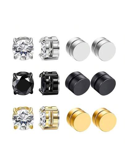6 pares de pendientes magnéticos de acero inoxidable, pendientes magnéticos de clip para hombres sin perforación, pendientes unisex - Multicolor - Añade 3