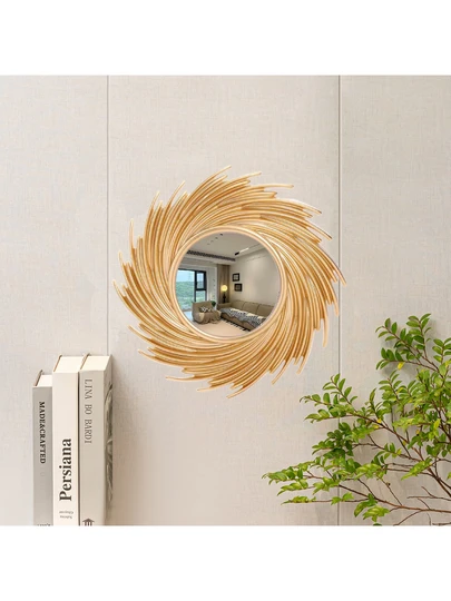 1 pieza Espejo de pared clásico, decoración para fondo de sofá de sala de estar, fondo de TV - Dorado - Añade 1