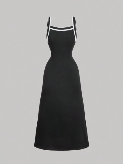SHEIN MOD Vestido largo de punto negro y blanco para mujeres - Blanco y Negro - Añade 1