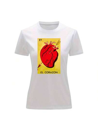 Playera Blusa El Corazon De La Loteria Mexicana Tradicion Mexicana - Blanco - Añade 1