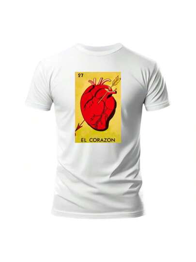 Playera Con Estampado De El Corazon De La Loteria Mexicana Tradicion Mexicana - Blanco - Añade 1