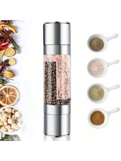 1 pieza, molino de condimentos de acero inoxidable y vidrio 2 en 1, con mecanismo cerámico ajustable, utensilios de cocina de condimentos, sin necesidad de electricidad, utensilios de cocina, elementos de cocina, alimentos, cocina, temporada, especias, pimienta, ajo, sal, organizadores, fiestas, decoración de habitaciones. - Plateado - Añade 1