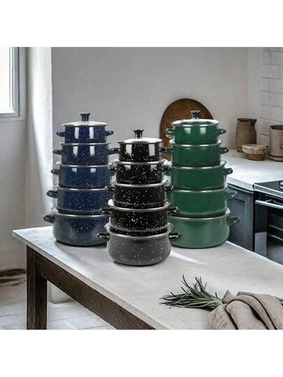 Set de 5 piezas Ollas esmaltadas de porcelana con diseño de estrellas, incluye olla de sopa, cacerola y olla guisera, de alta calidad y durabilidad, en variedad de tamaños, adecuadas para cocina a gas, vitrocerámica y llama abierta, utensilios de cocina para la cocina y el comedor - Multicolor - Añade 10