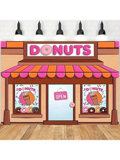 1 pieza Fondo de tienda de café con donas: Accesorio de estudio para toma de fotos - Perfecto para fiestas de cumpleaños, tiendas de postres y temas de princesa - Multicolor - Añade 1