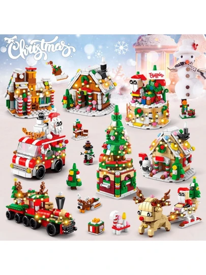 Caja ciega de regalo de decoración navideña - Bloques de construcción para niños que benefician la inteligencia y el juguete de ensamblaje del modelo de árbol de Navidad de partículas pequeñas - Multicolor - Añade 11