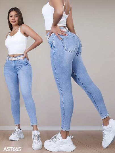 Jeans para Mujer, Pantalones de Mezclilla Skinny - Azul Acuario - Añade 1
