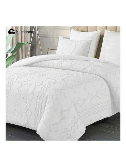 Juego de Funda Duvet Matrimonial Forma de Líneas. Solo Cubierta de Edredón con Cierre de Botones, Incluye 2 Fundas de Almohada. Bluelander. - Blanco - Añade 1