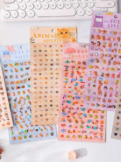 2 hojas de pegatinas mini adorables, serie de diseños de animales peculiares, pegatinas decorativas para manualidades, estuches de teléfono, cuadernos, cascos, monopatines, juguetes DIY creativos - Multicolor - Añade 8