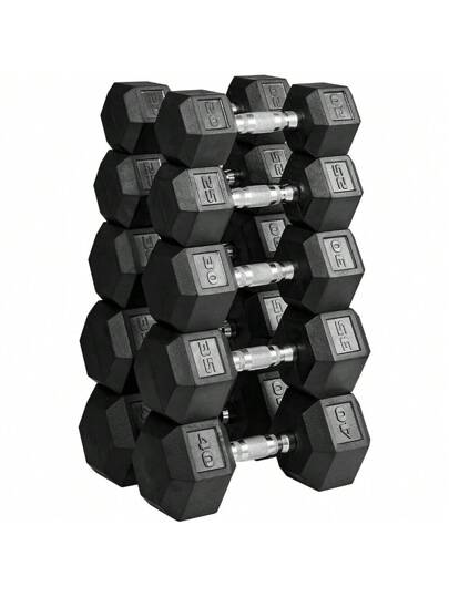 Set de mancuernas con recubrimiento de goma hexagonales, pesas libres, juego de pesas para uso en casa sin estante - Juego de 300 lb (par de 20, 25, 30, 35 y 40 lb) - Añade 5