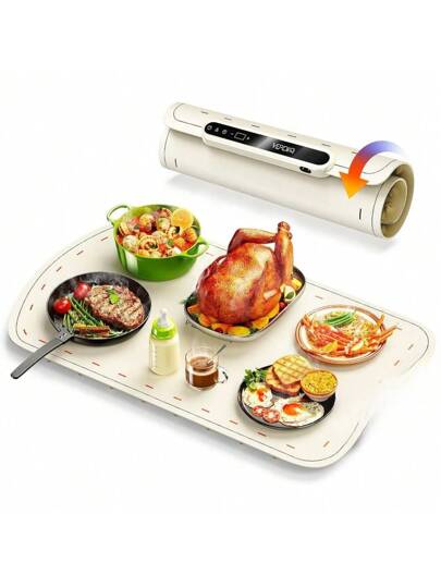 Tapete calentador de alimentos para bandejas de buffet para mantener los alimentos calientes en fiestas, alfombrilla de calentamiento de silicona con 7 niveles de temperatura y apagado automático, calentadores de alimentos para fiestas, reuniones y uso cotidiano - Blanco - Añade 1