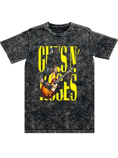 Playera Bandas de Rock Legendarias efecto deslavado moda urbana - Amarillo - Añade 1