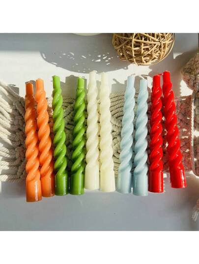 1 caja con 2 piezas de velas en espiral tipo taper, de 6.7 pulgadas/17 cm, diámetro de base de 2 cm, con un tiempo de quemado de 4 horas, sin goteo, diseño en forma de taper, sin fragancia, para decoración de fiestas, bodas y cenas - Multicolor - Añade 8