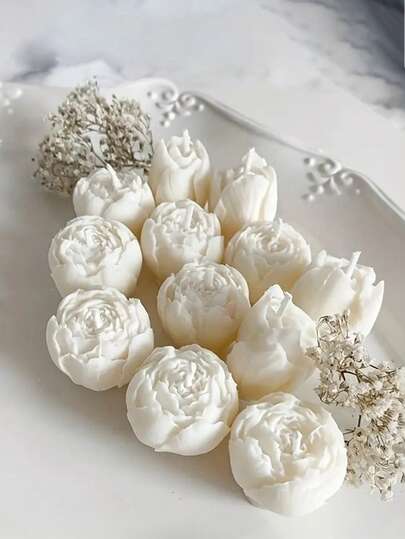 Vela con forma de rosa artesanal y perfumada - Decoración del hogar romántica y regalo perfecto para el Día de San Valentín, bodas, Día de la Madre y ocasiones especiales | Vela única de cera vegetal | Ideal para decoraciones, accesorios de fotografía, regalos de cumpleaños y obsequios de bodas - Disponible al por mayor - Blanco - Añade 11