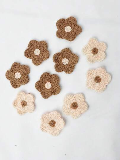 Set de 10 piezas de aplicaciones de flores de cinco pétalos de hilo en colores café y blanco marfil, con textura suave de punto y orificio central para fácil adherencia, para manualidades DIY, ropa, calzado y sombreros - Multicolor - Añade 10