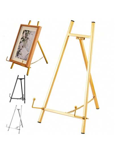 1 pieza Caballete de metal, soporte de plato de metal para exhibición, caballete de mesa para exhibición, trípode moderno para sujetar arte, cuadros, espejos, con cadena de soporte para exhibir libros, fotos, letreros de boda, caballetes de mesa para exhibición, soporte de caballete de espejo para marcos de fotos - Multicolor - Añade 5