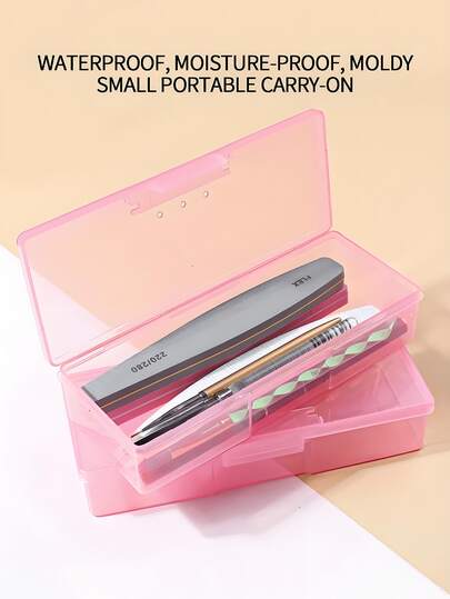 Organizador de herramientas para uñas con lima de uñas, bolígrafo y esponja, organizador de joyas rectangular portátil para herramientas de uñas, caja de plástico transparente para accesorios y decoraciones de uñas, organizador de puntas de uñas, organizador de joyas para herramientas de uñas, caja de arte de uñas, caja de maquillaje de bordado de plástico, caja transparente, organizador de herramientas con rhinestones de esmalte de uñas rosa - Multicolor - Añade 1