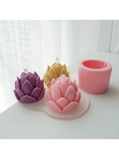Molde de silicona de flor de loto en 3D en forma de capullo para hacer velas, manualidades decorativas de resina, y ornamentos de flor de silicona de forma artesanal - Rosa - Añade 1