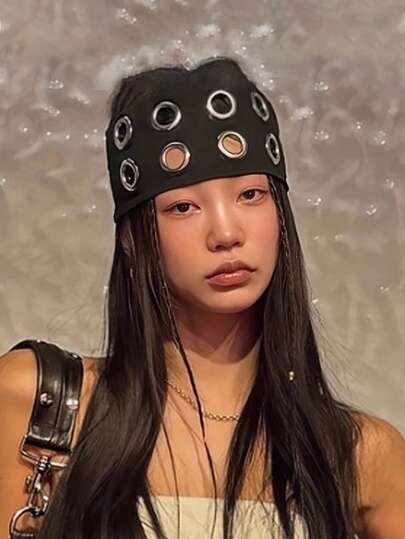 1 pieza Diadema elástica hueca de tela con ojales metálicos de estilo punk personalizada para mujer, accesorio de cabello casual y deportivo para otoño e invierno, accesorio de cabello para mujer para atuendos de vacaciones - Multicolor - Añade 1