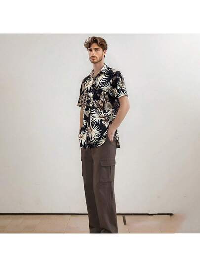 Camisa Hawaiana de Manga Corta para Hombres: Estampado Floral de Moda Verano - Negro - Añade 1