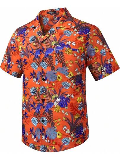 Camisas hawaianas de manga corta para hombres, camisas casuales de verano estilo tropical Aloha con botones y para ir a la playa - Amarillo - Añade 1