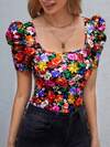EastFlair Blusa de corte evasé con estampado de tótem de estilo neotradicional chino para mujer