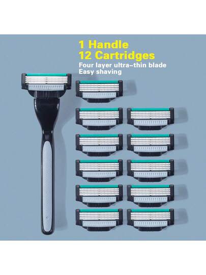 jifuli Cuchillas de afeitar para hombres de 4 capas de acero inoxidable, cabezales de afeitadora manual reemplazables - Multicolor - Añade 12