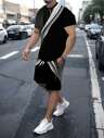 Set de 2 piezas de moda urbana de verano para hombre, talla grande, con parte superior de manga corta y pantalones cortos con estampado de 24 diseños