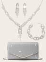 Conjunto de joyería de diamantes para mujer, collar, aretes y pulsera de lujo brillante, con forma de V de metal personalizada y cadena desmontable, ligero y con decoración de strass, ideal para uso casual o de negocios. Bolso pequeño con cordón, diseño elegante y exquisito, perfecto para fiestas, cenas, bodas y eventos. Complemento ideal para vestidos de fiesta, boda y celebraciones.