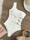 Swim Vcay Traje de baño de una pieza elegante para vacaciones con hombros con lazo y decoración metálica hueca en la cintura, de unicolor